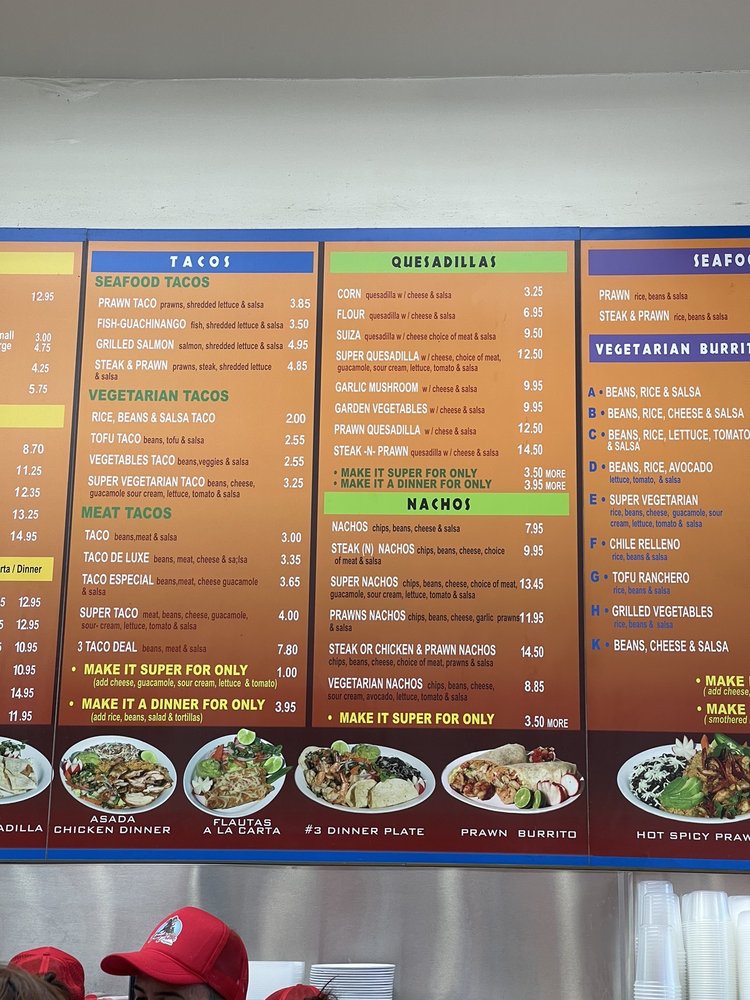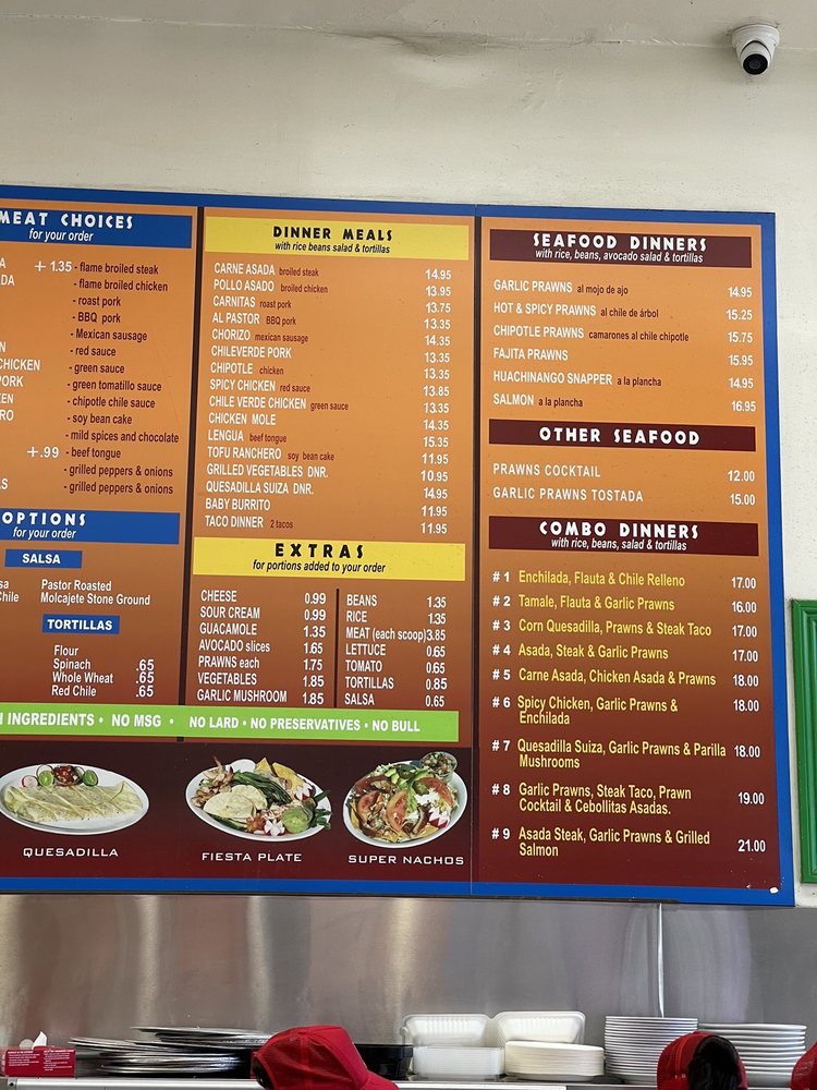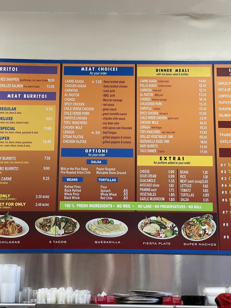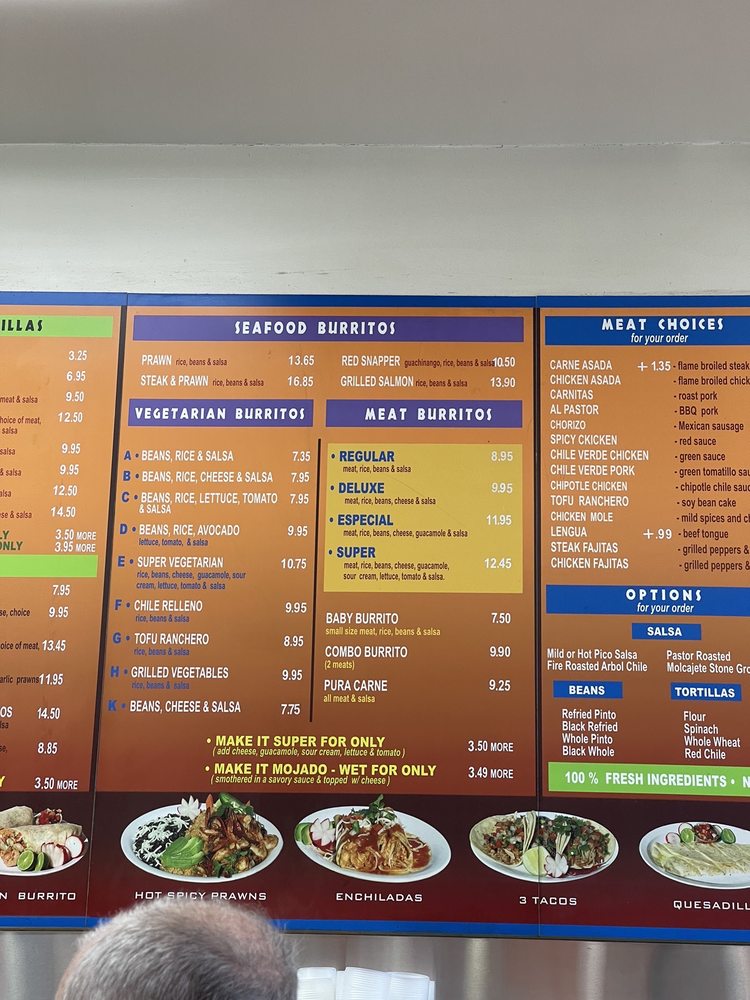 Introducing the menu at Pancho Villa Taqueria in San Mateo, CA. This vibrant spot offers a variety of options from meat burritos, seafood burritos, to vegetarian burritos. The regular, deluxe, and especial burritos are top choices, with the option to make them "mojado" for extra flavor. Seafood lovers can indulge in prawns or Baja fish burritos, while vegetarians can enjoy a selection of bean and rice combinations or a tasty chile relleno. The reviews speak for themselves, with customers praising the welcoming atmosphere, excellent service, and top-notch food quality. With options for delivery, takeout, and even catering, Pancho Villa Taqueria caters to all preferences, making it a must-visit for Mexican food enthusiasts.